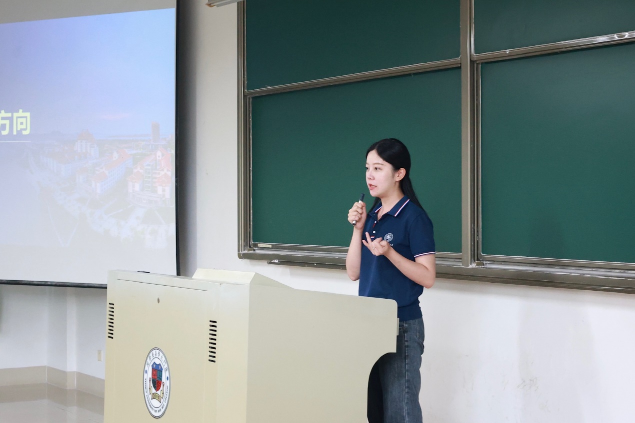 首先,周郁蓓院长全方位地介绍了英语专业,包括教师阵容、课程体系、实践教学等。周院长特别指出,在这个全球化与AI时代,AI 翻译虽便捷,但人文翻译的价值不可替代,学习人文知识对翻译工作至关重要,这是 AI 难以企及的温度与深度。