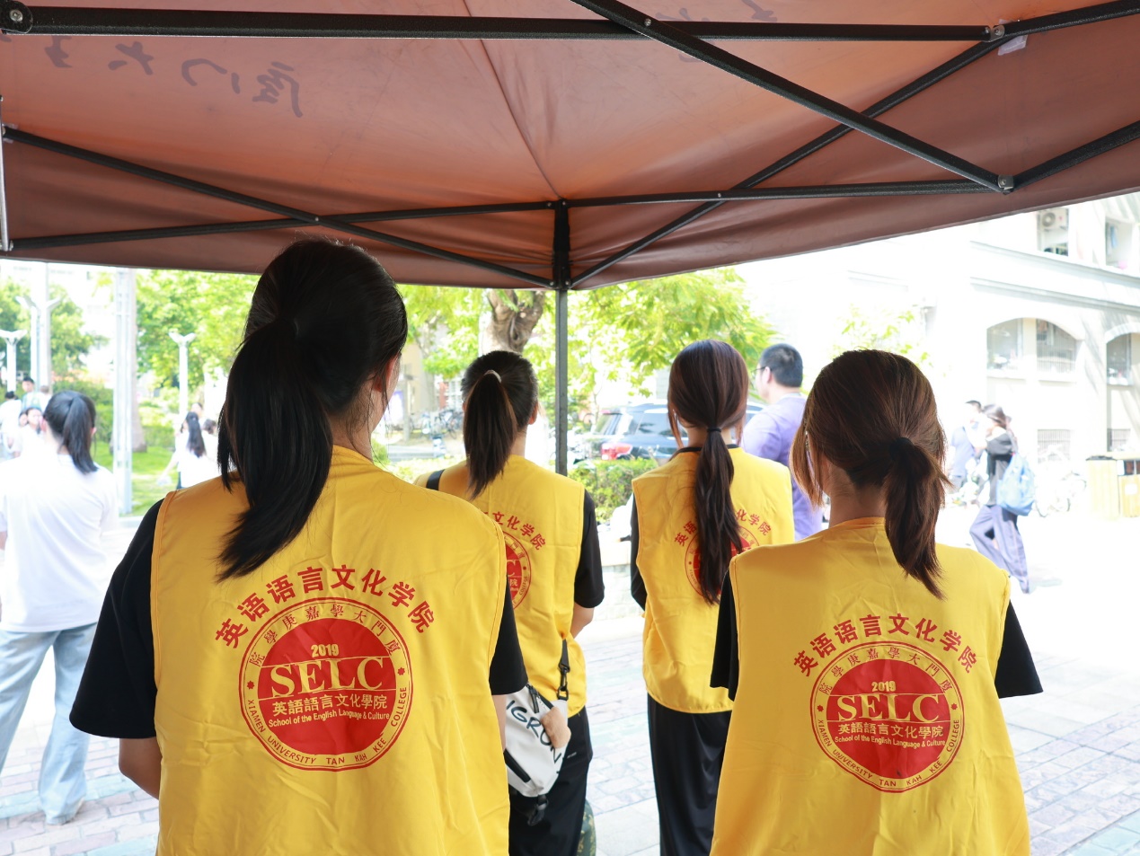 学长学姐们身着黄色志愿者马甲笑迎新生,指引方向,助力快速报到,温暖启航。